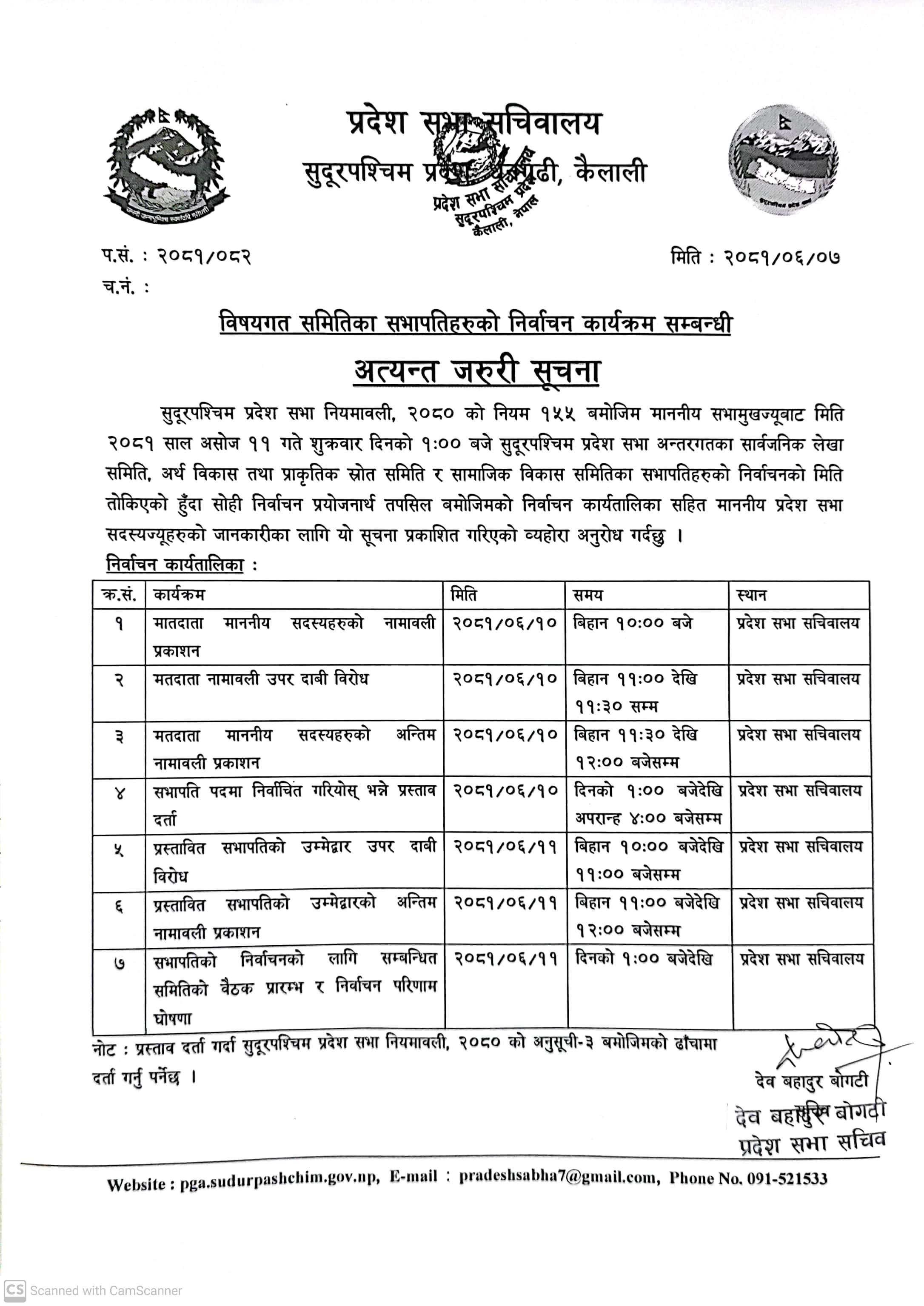 विषयगत समितिका सभापतिहरुको निर्वाचन कार्यतालिका